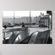 Erleben Sie die faszinierende Geometrie und das Licht der Prager Straßenlandschaft mit diesem leistungsstarken Schwarz-Weiß-Druck. Dieses Foto erfasst den Eingang zur Metrostation Palackého Náměstí, wo sich eine Einzelfigur über den scharfen, absteigenden Linien der Eingänge zu den Rolltreppen befindet. An einem hellen Morgen betont die kontrastreiche monochrome Palette das Spiel von Sonnenlicht und Schatten über die Metallgeländer, Betonbarrieren und städtischen Bürgersteig. Die Komposition wird durch starke Parallellinien und geometrische Formen dominiert, die den geschäftigen Kreuz und die entfernten, unscheinbaren Gebäude der Neustadt Prag umrahmen. Die Figur im Vordergrund, die eine Kappe trägt, verleiht dem modernen urbanen Umfeld ein Gefühl zeitloser Introspektion und menschlicher Größe. Dieser Ausdruck eignet sich hervorragend für Sammler von Straßenfotografie, Architekturstudien, Prager Reisekunst oder für alle, die ein stilvolles, kontrastreiches urbanes Design für ihre Zuhause oder ihr Büro suchen. Es vereint einen Augenblick der Stille in einer lebendigen Stadt. Prag, 2023.