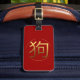Goldenes Hundesymbol mit einem prägeartigen digitalen Effekt auf roten Gepäckanhänger. Sie kann Text (Schriftart, Farbe, Größe und Position) indem Sie den besonders anfertigen Knopf leicht ändern anklicken. Zusammenpassendes t=shirt, Grußkarte und mehr… Vervollkommnen Sie für chinesisches neues Jahr des Hundes 2018 oder des Geburtstages (die Leute geboren im Hundejahr). ---- "Der Hund (狗) ist einer des 12-jährigen Zyklus der Tiere, die im chinesischen Tierkreis erscheinen, der auf dem chinesischen Kalender bezogen wird. Das Jahr des Hundes ist mit dem irdischen Niederlassungssymbol 戌 verbunden. Das Charakter 狗 bezieht sich das auf tatsächliche Tier, während 戌 auf das Tierkreistier sich bezieht. (...) Können die Leute, die innerhalb dieser Datumsbereiche geboren sind, gesagt werden, im "Jahr des Hundes" geboren gewesen zu sein, beim das folgende elementare Zeichen auch tragen: