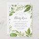 Notre élégante invitation à la douche nuptiale Wild Meadow comprend vos détails de douche nuptiale en bloc gris et des lettres de calligraphie, encadrées par une aquarelle peinte verdure dans des tons luxuriants de vert printemps, d'olive et de fougère. Un choix moderne et bio pour les douches nuptiales du printemps ou de l'été avec des feuilles verts frais et des tiges dans Greenery, couleur de l'année 2017.