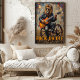 Dieses dynamische Kunstwerk zeigt einen Löwen, der mühelos in Sonnenbrillen und einer Lederjacke cool aussieht, meisterhaft eine elektrische Gitarre "zerkleinert", während er auf einem verwitterten Wagenrad sitzt. Die Szene entfaltet sich in einer riesigen, goldenen Prärie mit entfernten Hügeln unter einem dramatischen Himmel. Das dicke, ausdrucksstarke Impasto schafft eine greifbare Textur, wodurch die "Rock or Die"-Deklaration mit der Rohenergie der Performance in Einklang steht