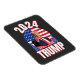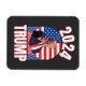 Präsident Trump Magnet. Präsident Trump ist vor der amerikanischen Flagge Stehend. Buchstaben und Zahlen sind in Rot dargestellt.