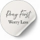 Minimal Christian sticker with the message “Pray First, Worry Less” — a calm, everyday reminder to choose prayer over anxiety.