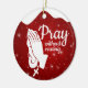Pray without ceasing, Religious Holiday Ceramic Ornament with berry red snow glistening, Praying hands capturing the Christmas magic and joy of a Christian season. On the back, the sacred writing, Matthew 6:10 "Thy kingdom come. Thy will be done in earth, as it is in heaven" all in customizable text, ready for you create your favorite bible verse in a festive devotional design hanging decorations. Order your Christ teachings testaments today and make your custom inspirational doctrine keepsakes extra special with divine passages of the word of our Lord! 🎄⛪️