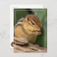Ein niedlicher Chipmunk wird wie im Gebet auf einem gefallenen Baumzweig gestellt.