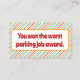 Preis für den schlechtesten Parkplatz. Telefonnummerkarte