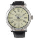 Uhr, Vintage Männeruhr mit schwarzem Lederarmband