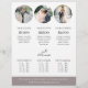 Unsere moderne Preisführerliste für Hochzeitsfotografen zeichnet sich durch ein minimalistisches Design, stilvolle Typografie und gerahmte 4-Kreise-Fotos aus. Fügen Sie Ihre Paketdetails, Kontaktdaten und Branding hinzu. Fotos von Prostooleh / Freepik.