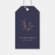 Elegante Rose Gold Linie Kunst botanischen Zweig, verdunkeln blaue Preisschilder.