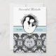 Notre faire-part de mariage customisée First Kiss 5x7" est composée d'un mari et d'une femme mariés sur le point de s'engager dans leur premier baiser. Un arrière - plan damassé gris et blanc avec un bandeau bleu marine et un texte qui dit "il a demandé... J'ai dit oui" et des endroits où vous pouvez ajouter votre cérémonies mariage et les détails de réception sur un faire-part de mariage unique et classe entièrement personnalisable.