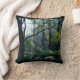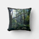 Des rayons blancs brillants du soleil matinal jaillissent de branches sombres vers une forêt estivale verdoyante, avec des arbres massifs recouverts de lierre et des pinces fertiles.