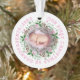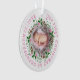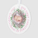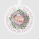 Premier Noël en tant que grands-parents portent la petite fille photo ornement acrylique. Ce design festif présente une photo du bébé dans un cadre de couronne de Noël et le texte : "NOTRE PREMIER NOËL EN GRANDS PARENTS. 20XX" en rose.