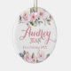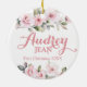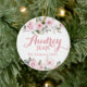 Jolies fleurs roses, le premier ornement personnalisé de Noël du bébé, changer le texte vous-même lors de la commande