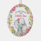 Le premier ornement de Noël du bébé présente un petit éléphant d'aquarelle doux avec une jolie couronne de fleurs d'aquarelle. Personnalisez avec votre nom et votre date de naissance. Un cadeau de gardien pour le 1er Noël du bébé.