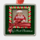 Créez un héritage familial unique lorsque vous ajoutez votre photo à cet ornement adorable avec un cadre rayé sucre de canne en rouge et vert attaché avec un ruban en satin rouge. L'Arrière - plan est vert festif avec une place pour la personnalisation.