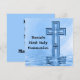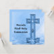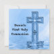 La conception mignonne et unique avec des couleurs bleues, montrées indique : "La première sainte communion de Daniel" sur l'avant avec une conception originale d'art d'une croix spéciale avec l'étoile a éclaté tous reflétés dans les ondulations paisibles de l'eau ci-dessous. Changez facilement le nom et ajoutez votre texte fait sur commande sur le dos. Rappelez-vous ce jour saint spécial avec ces invitations et annonces faits sur commande pour votre famille et amis. Voir les premiers autocollants et boutons semblables de communion, les goupilles, le magnet, les T-shirts, les timbres-poste, et les classeurs au magasin de MVDesigns. En outre grand pour des confirmations, des baptêmes, et des mariages !