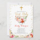 Première invitation de sainte communion de garçon, avec des confettis d'or et beau floral bleu.