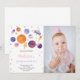 Célébrez le premier voyage de votre petite fille autour du soleil avec notre adorable Première Excursion autour du soleil Invitation anniversaire! Doté d'un design spatial ludique et d'un espace photo personnalisable, cet invitation est parfait pour créer des souvenirs de premier anniversaire hors du commun.