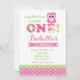 Premières invitations de fête d'anniversaire de hibou pour la fille