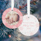 Ce design sucré présente des flocons de neige roses et argentés avec espace pour une photo commémorant le 1er Noël du bébé ! La collection de produits de coordination est disponible dans notre boutique, zazzle.com/doodlelulu*. Contactez-nous si vous avez besoin que cette conception s'applique à un produit spécifique pour créer votre propre article de correspondance unique! Merci tellement pour voir un DoodleLulu par 2 june conception de bogues!