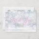 Carte de remerciement premiers flocons, avec des flocons de neige délicats tombant sur votre message de remerciement, dans un texte rose élégant, sur un fond hivernal magique. Vous pouvez personnaliser avec votre propre message de remerciement au verso, un moyen parfait de dire merci ! Conçu par Thisisnotme©