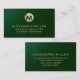 Premium Green Leather Gold Monogram Visitenkarte