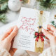 Célébrez en style avec cette invitation à la fête Eat, Drink and Be Joyeux avec une bouteille de champagne attachée avec un arc rouge, accentuée par les baies d'hiver et la verdure festive. Idéal pour les fêtes de Noël, les cocktails ou les fêtes de saison. Voir notre collection pour plus de design de fêtes de fin d'année.