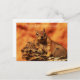 Une photo mignonne d'un écureuil penché contre un bûcher. Avec ces mots : "Je suis prêt pour l'hiver, n'est-ce pas ?" La couleur dominante est l'orange, la couleur caractéristique de l'automne.
