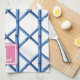 Preppy Blue Trellis Bamboo Muster Monogram Geschirrtuch