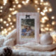 Festlicher Roter Streifen, Preppy Black Ribbon Bow Rahmen, flache 2 Foto Ferienkarte.