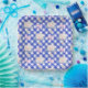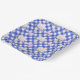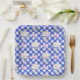 Preppy First Birthday Chinoiserie Ruffle Cake Bows Paper Teller mit einem blauen Karo Gingham Hintergrund.
