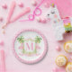 These plates have a preppy design featuring a Christmas crest with palm trees and flamingos wearing Santa hats.