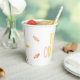 Diese festlichen, preppy Halloween-Papiertassen sind perfekt für Ihre Halloween-Ansammlung. Die nicht so beängstigende Farbpalette besteht aus rosa, orangefarbenen und gelben Farbtönen in einem festlichen Schriftart zum Thema Knochen. Bunte kleine Bonbons schmücken die Tasse. Diese Tassen sind ideal, um heiße Getränke unterwegs zu trinken oder mit Ihren Kleinen zu behandeln.