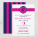 Preppy Hot Pink und Navy Blue Monogram Einladung