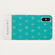 Holen Sie sich Ihr personalisiertes iPhone Gehäuse mit einem eleganten Aussehen mit einem prächtigen Chic-Muster aus Gold und Silber auf einem Hintergrund Ihrer Wahl Marine, Türkis oder Weiß. Monogram ist auf einem weißen Rand unten in einem serifenlosen goldenen Schriftart.