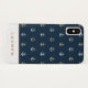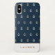 Holen Sie sich Ihr personalisiertes iPhone Gehäuse für ein elegantes Aussehen mit prächtigen Chic-Mustern aus Gold und Silber, auf einem Hintergrund Ihrer Wahl Marine, Türkis oder Weiß. Monogramm ist auf einem weißen Rand unten in Sans Serif Gold Schriftart.