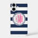 Preppy Nautical Navy & White Strip Pink Monogram iPhone 16 Hülle