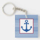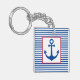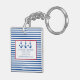 This preppy keychain features classic blue and white stripes with an accent of red and a nautical anchor. Personalize with your choice of name or special text on the back. Great for personalized gift bags and party favors.
