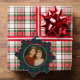 Personalize with your favorite family or children’s photo, names, and year to create a meaningful holiday memento that will be treasured for years to come. The elegant round photo frame paired with the scalloped plaid ornament shape brings a polished, preppy touch to your Christmas greetings.