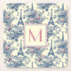 Preppy Paris Toile Pink und Blue Monogram Rechteckiger Pappuntersetzer