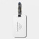 Gepäckanhänger mit pastellfarbenem Hintergrund in beliebiger Farbe mit Streifen und einem dreiteiligen Monogramm auf einem blütigen Monogramm-Halter. Auf der Rückseite befinden sich die Informationen in einem serifenlosen Schriftart auf weißem Hintergrund.