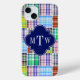 Farbenfrohe Preppy Patchwork Madras Style Kariertes Muster, Navy Blue Quatrefolie Monogram Anpassen Sie dies mit Ihrem 3 initialen Monogramm, Namen oder anderen Text. Sie können auch den Schriftart ändern, die Größe des Schriftartes und die Schriftartes anpassen, den Text verschieben, um den Abstand der Buchstaben anzupassen, Textfelder hinzufügen usw. 2015 ©FantabulousPatterns Alle Rechte vorbehalten
