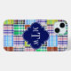 Preppy Patchwork Madras Navy Quatrefoil Monogram title_seo2