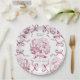 Preppy Pink Toile Hydrangea Bow mit Namen Pappteller