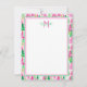 Preppy Pink und Green Christmas Trees Monogram Mitteilungskarte