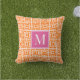 Preppy Square Lattice Monogram Hot Pink & Orange Kissen