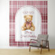 Preppy Teddy Bear Pink Bow Birthday Photo Backdrop Wandteppich