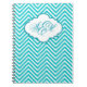 Carnet/Journal customisé : Monogramme gracieux/Cadre Turquoise branché/Motif Arrière - plan Chevron Turquoise Fille