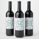 Preppy White Zebra Martinis Green Monogram Weinetikett