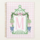 Dieses Design hat einen Preppy Boxholzkranz mit einem rosa Gingham-Bogen. In der Mitte können Sie Ihre Monogramm Initial, Jahr und einen Namen hinzufügen.
