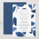 Elegant watercolor botanical wedding invitations feature your wedding details in classic lettering, framed by watercolor leaves in shades of indigo and cobalt blue.
